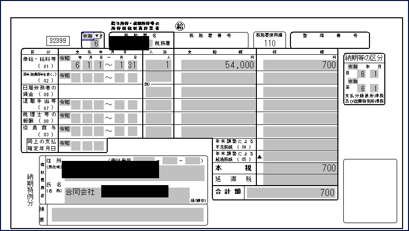 泉所得税の納付書は「1か月に1回」「半年に1回」のどちらかです。でも、税務署的には正しく納税してくれれば問題ないため、源泉所得税の納付書を複数枚に分割します。