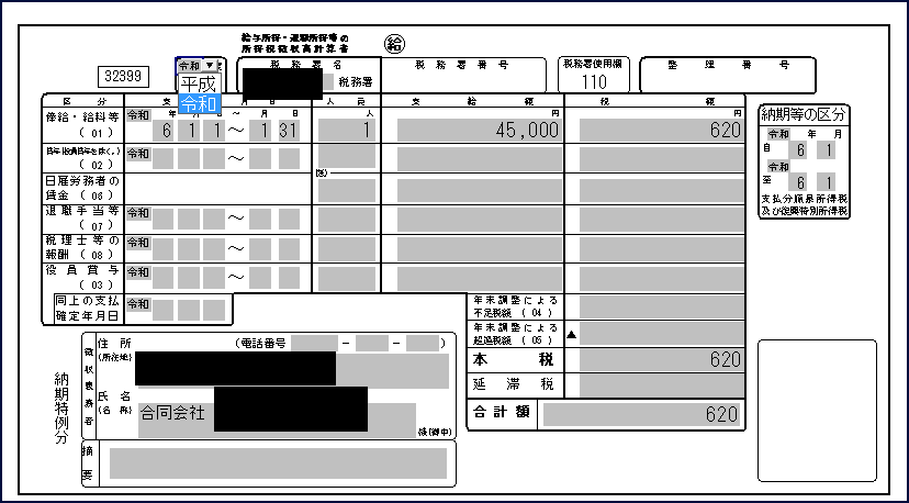 500円以上の源泉所得税を複数に分けて作成する