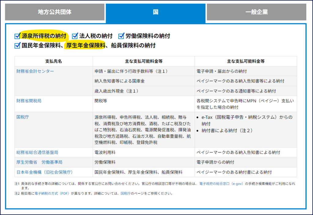 ペイジーなら何でも対象。税金や社会保険料もOK