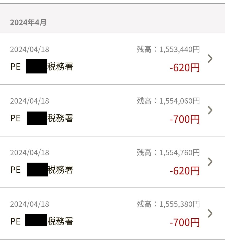 | 応募回数 | 支払日 | ペイジー内容 | 支払った金額 |