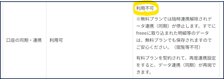 freeeやマネフォなど、クラウド系の会計ソフトの機能のメインといえるデータ連携機能が無料プランでは使えません。2024年1月14日以前は連携は無料で使うことができました。