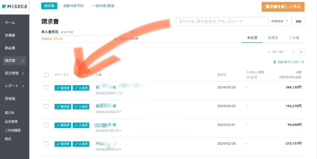 Misocaでは、請求と入金の有無をワンクリックで管理できるので、意外とこれが便利だと感じています。