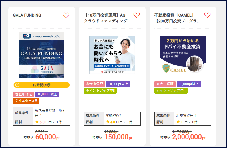 こちらも埼玉県に限らず、日本全体で勢いを感じるポイ活案件です。不動産投資系のクラウドファンディングをポイントサイト経由で口座開設して案件に参加することで、利回りを実質的にアップさせることができます。