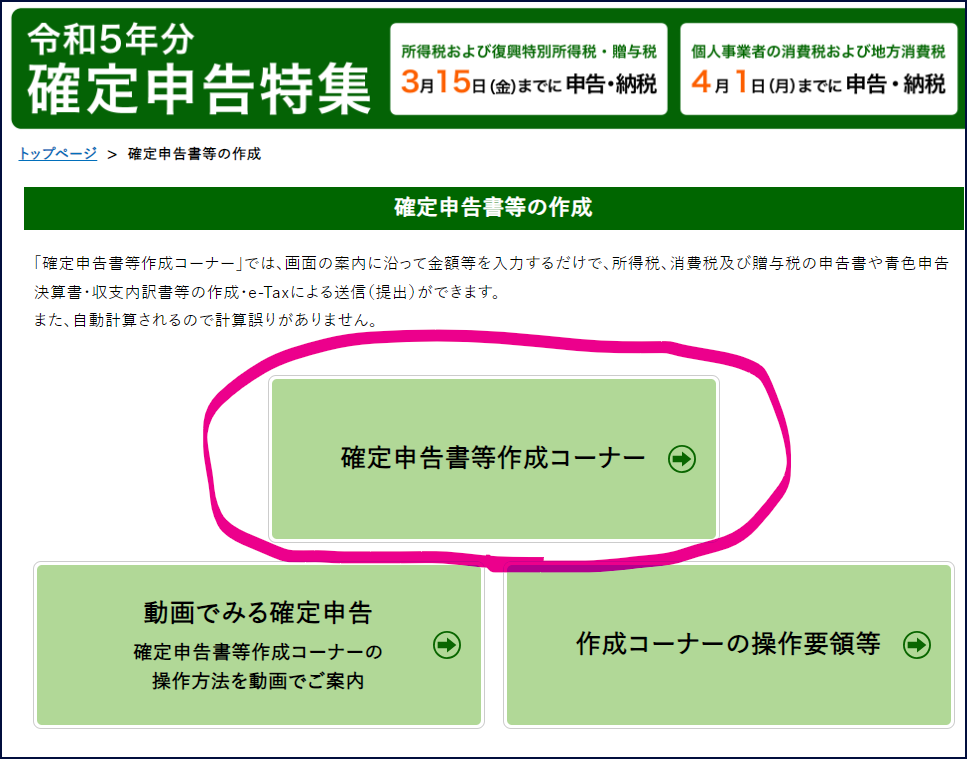 - 国税庁の確定申告作成コーナー・・・青色決算書と申告書の作成